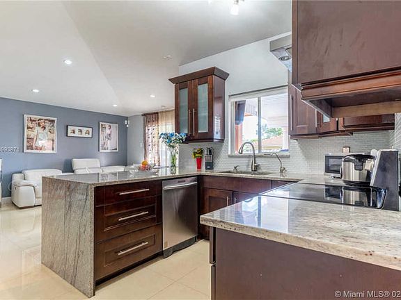 Gorgeous home in South Miami. This home is originally a 3 bedroom 2 bathroom home, but the garage was converted, turning it into a 4 bedroom, 3 bathroom home. The home has beautiful tile throughout except in the converted garage and laundry room, beautifully upgraded bathrooms, the kitchen has marble countertops and stainless steel appliances, crown molding and high hat lighting, LG washer and dryer, tankless water heater. You will enjoy spending time in your new backyard, relax under the porch, sunbathe next to the pool or relax in the jacuzzi next to the pool. This home is move-in ready don't miss out!
