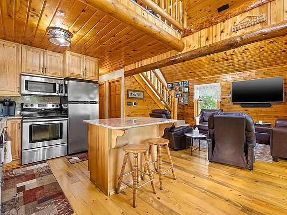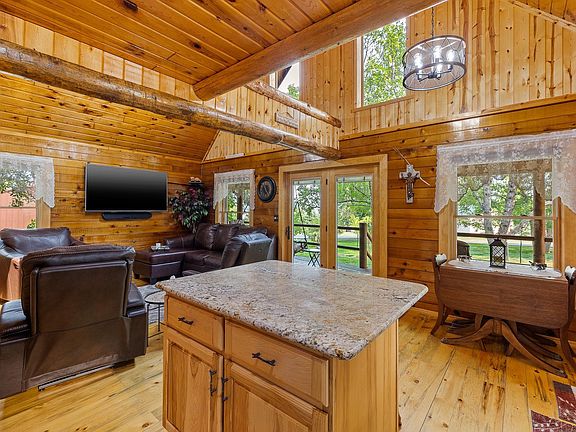 Listed by Shauna Sheets, KWBH, 605-545-5430. Beautiful log cabin home on a 1 acre lot near USFS land! *Quality log construction, beautiful knotty pine walls and ceilings, custom woodwork throughout and more make this home a must see *Recent updates include: Pella Windows and doors, on-demand water heater, granite countertops, all light fixtures, furnace and a/c, blacktop driveway, and roof *Add’l features: 8'x24' dog run with access to garage, mature trees throughout the property, water hydrant to shop, wood burning stove in shop and more! *4 bedrooms, 2 bathrooms, 1,476sqft *Main level has an open floorplan, accented by 2-story vaulted ceilings and a wall of windows with beautiful natural light *Corner kitchen has ceiling height cabinetry, upgraded countertops, stainless steel appliances, a walk in pantry, and a large island for added seating and storage *Cozy dining area with window overlooking the front yard *Comfortable living room gives great space to relax with family and friends *Main level Master bedroom and full bathroom for easy accessibility *Up a custom staircase is the multi-use loft area and private suite with a large bedroom, ensuite bathroom and private balcony *Bonus utility room leads you to main level laundry and attached oversized garage *Garage is fully finished with walk up attic boasting 912 sq feet of storage*2 additional bedrooms (ntc for closets) off the garage for privacy *10'x10' enclosed hot tub gazebo- great space to unwind!