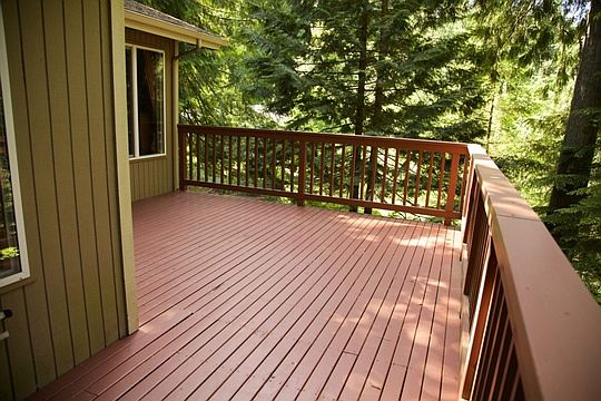 See the forest from your front door! A tree lovers hideaway nestled among tall cedars, firs and maples. This charming home on a private driveway was remodeled in 2005. Well kept interior w/ stainless appliances and tile kitchen counters. Floor to ceiling river rock fireplace adds a warm feeling of coziness. Enjoy the huge deck that overlooks your secluded garden. Located next to greenbelt and near the park. Many area amenities including swimming pool, golf course, lake access, and tennis courts. $
