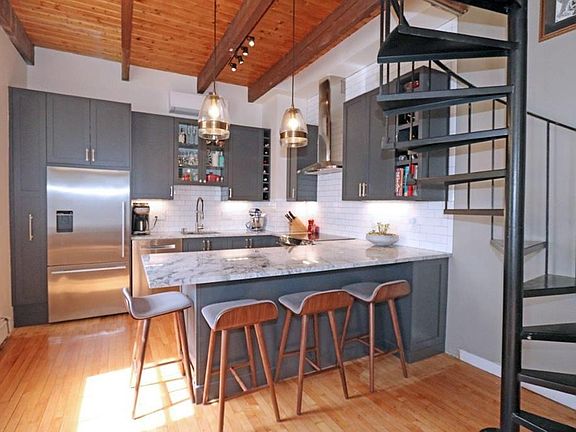 Old world charm meets hip, stylish finishes in this conveniently located 2 bed condo on Chestnut Ave. Once an old schoolhouse now resides 6 condo units steps from Stony Brook T Station, an easy walk to the Brewery District and the shops on Centre. The main living area offers original refinished maple floors with high ceilings, recessed lighting, exposed beams and central air. The fully redesigned chef's kitchen boasts quartzite counters, custom Kountry Kraft pencil grey cabinets, trendy antique brass hardware, under mount cabinet lighting, Bosch dishwasher, Fisher Paykel refrigerator, Samsung induction stove (with dual oven option), Broan hood and solid oak tongue and groove beamed ceiling. The second level has 2 large bedrooms with generous storage/closets, new 5" hand scraped oak floors, skylights, full bath and 2 zone central air. Perfect outdoor setup for gatherings with a large grass area and future patio. 1 deeded parking space and 3 guest spots