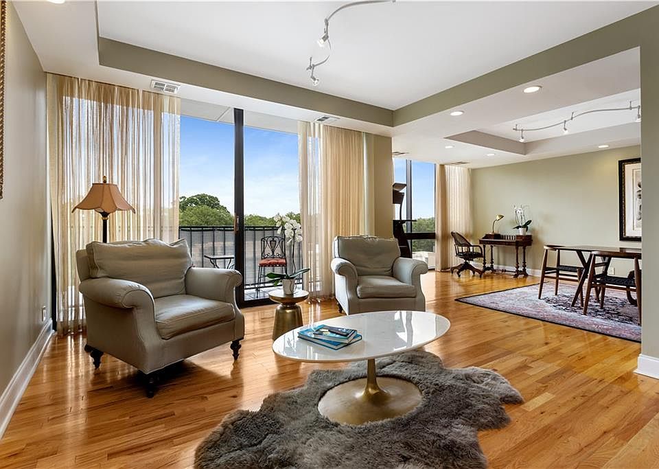 This generous 2 bedroom, 2 1/2 bath floor plan has been updated to include hardwood floors, granite countertops, stainless steel appliances, and wine cooler. First floor living room with beautiful natural light accentuates the built-in bookcases, while overlooking the balcony and spacious dining room that seats 8+. Flex space is perfect for a formal sitting area or a cozy home office. Upper level oversized primary suite boasts wonderful views of Ansley Park, generous walk-in closets and a large updated en suite bath. The second bedroom offers built-ins, and an updated full bath with even more Ansley Park views. Enjoy 24-hour concierge service, secured parking, and all utilities included in the HOA fee. This is a pet-friendly community with a dog park nearby. This luxurious townhouse-style 2-floor unit in the heart of Midtown boasting stunning views of Ansley Park and is an important part of Atlanta's modern architecture history as the first mixed-use development in the Southeast built by the award-winning Jova/Daniels/Busby firm in 1972. Be a part of that living history while enjoying the adjacent and all-new Colony Square--home to shopping, destination restaurants, as well as an upscale movie theater. Not to mention, the convenience of nearby MARTA, I-75-85, High Museum, Piedmont Park, and the Beltline. Live where art, commerce, and culture meet.