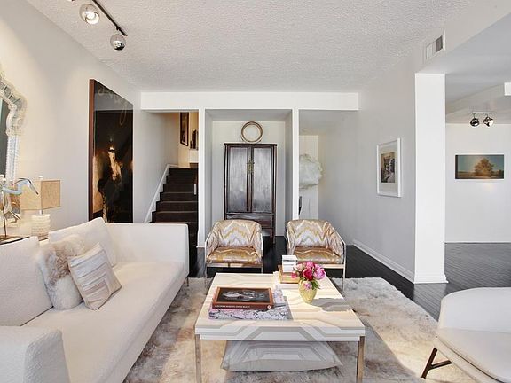 BACK ON MARKET AND REDUCED! Buyer financing fell through. Designer's own unit w/ main level entry leading to the living room w/ open dining room. Floor to ceiling windows in both. Sleek European kitchen w/cabinets by Dada and Miele appliances w/range, oven and built-in coffee system. The second level boasts a cozy den/media area w/two large bedrooms and two baths. Magnificent Italian sliding glass doors to guest suite. Master suite has an elegant built-in closet system and Phillipe Starck designed bath. Hardwoods throughtout. HOA includes utilties/cable/internet!