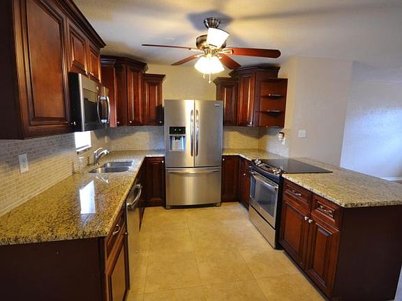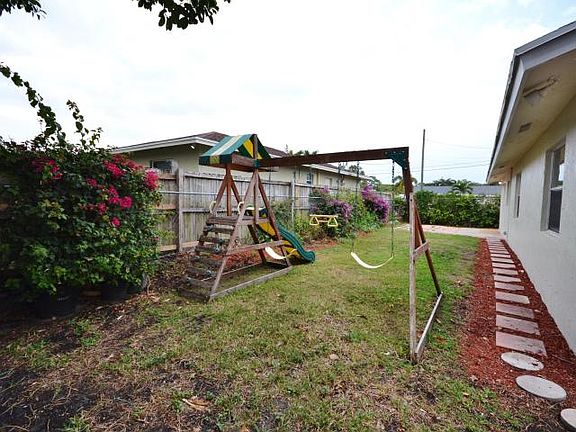 Beautiful remodeled single family home with brand new kitchen, beautiful SS appliances, granite counter tops, tile backsplash, new paint throughout inside and out, newer bathroom vanities, new laminate floor in two bedrooms, new tile in kitchen/dining room, new lights and hardware, newer AC, new water heater, fully fenced in around entire house for pets and security, alarm system installed with cameras, plenty of parking for boat or rv in side yard, lots of parking and lawn for kids to play. Playset in side yard. Washer and dryer room with AC window unit. Convenient location right next to Southern Blvd just East of Jog Rd. Roof replaced approx 2005. This property has a 3/2 main house with a 140sqft building in the back with a window unit that can be used for a 4th bedroom or guest room.