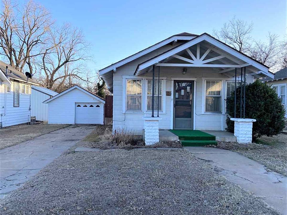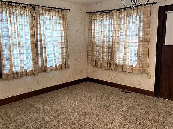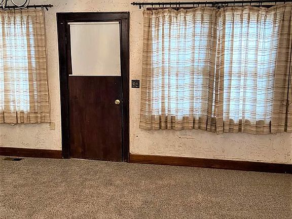The L-shaped living/dining rm has bristly textured walls. The kitchen has been recently painted & has formica backsplash/wainscoating, shelving, & basement entry. The bath has a tub/shower combination & tile flooring. Master bedroom has carpet, built-in cabinets & desk. Laminate two other bedrooms. Recently installed sump pump, hot water heater & shingles. An anti-room in the single car det. garage has a gas heater & a small freezer that remains with property.