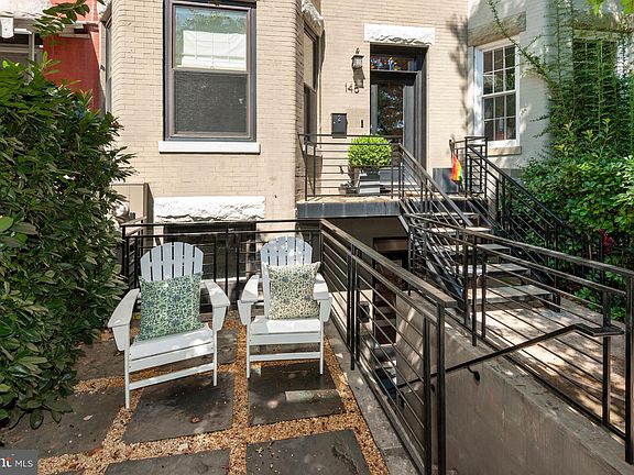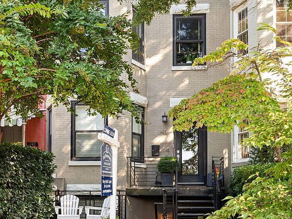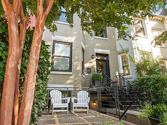 Beautifully renovated 2-level condo with parking on quiet, tree lined street. Stunning high ceilings throughout make the 1,400+ square feet feel wonderfully spacious. Victorian bay windows let in an abundance of natural light. Open concept floor plan has hardwood floors throughout. Separate living and dining areas, connected with large gourmet kitchen feature marble island and service/coffee bar, stainless steel appliances, wine fridge, and generous cabinet storage. Powder room plus closet and storage space complete the first floor. Upper level features 2 spacious bedrooms plus extra den/nursery/office (with closet) and 2 full bathrooms. Master suite includes two large closets with custom shelving and marble bath with dual sinks. New window treatments throughout. Separately deeded parking space in rear conveys. Close to Bloomingdale's restaurants, coffee shops, and parks. Within a mile of 3 Metro stops.
