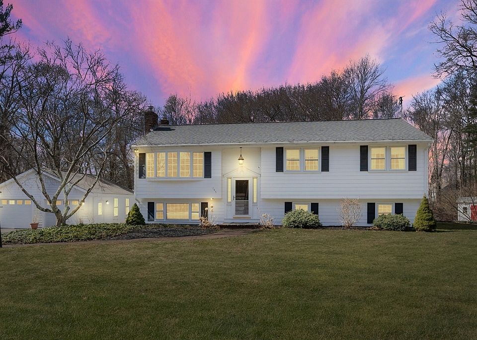 HIGHEST AND BEST OFFERS DUE TUESDAY, MARCH 26TH AT 5PM Spacious 9 room home situated on close to 2 acres of land with an oversized 2 car garage. The kitchen was updated about 10 years ago and has granite countertops, white subway tile backsplash and stainless appliances, 4 season sunroom/family room off the back of home, living room, dining room and 3 bedrooms, one of the 3 bathrooms has been renovated. The lower level has a bonus room with a fireplace and beamed ceiling, study and guest room plus a large workshop (more room to finish with 20x12 workroom). high-end new furnace, central air and roof is approximately 4 years old, composite deck, patio, mudroom and hardwood floors.
