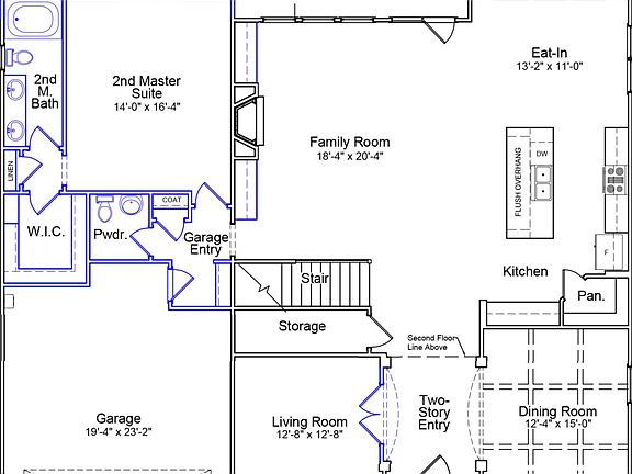 This Rutledge II is a five bedroom, four and one-half bathroom home, featuring two primary suites. The two-story foyer has arched entries into the living room and formal dining room. Ten-foot ceilings and hardwood flooring run throughout the first floor living spaces. The family room is centered around a natural gas fireplace and built-in shelves. The gourmet kitchen overlooks the family room and is complete with quartz countertops, built-in wall oven and microwave, and a gas range. One primary suite is located just off the family room. Upstairs there are three secondary bedrooms, all with walk in closets. The second primary suite is located upstairs and is complete with a sitting area, three walk-in closets, a soaking tub, and separate shower. Also located upstairs is the bonus room and laundry room.