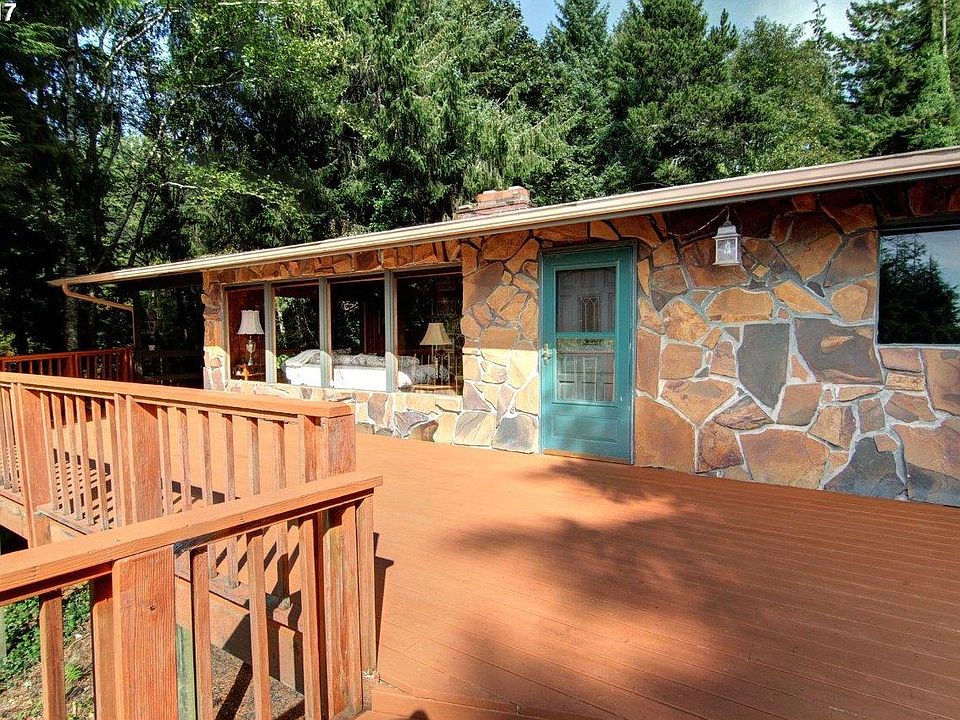 This house is as solid as a rock & enjoys a site high above the City of Seaside, out of the tsunami zone. It is almost a full acre of privacy with beautiful trees and natural landscaping. The large deck runs the full length of the house from which you have view of Tillamook Head and the city lights at night. The interior has a lot of natural wood 4 bedrooms including a hugh master,2 baths & 2 fireplaces