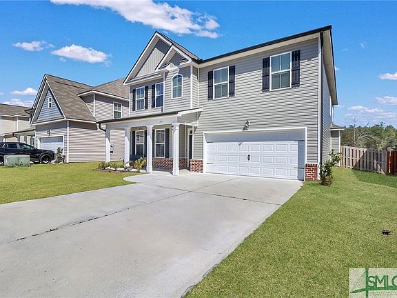 Welcome to The Woodlands! Located in the South Effingham School District. This stunning home offers 4 bedrooms, 3.5 baths, and 2,964 square feet of spacious living with thoughtful design touches. Step inside to a formal dining room with coffered ceilings. The open-concept great room flows seamlessly into the breakfast area and kitchen, featuring granite countertops, a tile backsplash, a large island, a pantry, and a half bath. Upstairs, the primary suite boasts dual vanities, two walk-in closets, a garden tub, and a separate shower. The second floor also includes three generously sized bedrooms, a laundry room, and two full bathrooms—one an ensuite. Enjoy outdoor living on the covered patio with a fan. The fenced-in yard includes a zoned sprinkler system, plus 2-inch faux wood blinds and gutters on the front and back of the home. This home is a must-see! Schedule your private tour today!