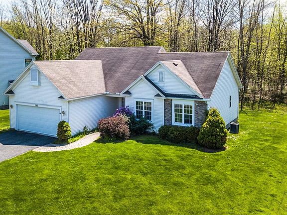 Welcome to 145 Barclay Court! One Level, RANCH, Living at it's best! Built in 2002 this Distinctive 3 Bedroom, 1.5 Bath, 1,519 Square Foot Home offers Totally Open Concept Living w/Soaring Volume Ceilings in Dining & Kitchen & adjoining Great Room with Gas Fireplace...you are going to love it here! Especially the simpler things...like enjoying a cup of joe on your wonderful rear open porch as you begin your day or a nightcap to end a great day! Master Bedroom has private access door to main bathroom w/double vanity! Convenient powder room is positioned perfectly between the Chef's Kitchen area & the Great Room! Circular Floor Plan! 1st Floor Laundry off mudroom by garage! Full unfinished basement is great for storage or any other potential use including a Rec Room. High Efficiency Water Tank & High Efficiency Furnace w/Central Air Conditioning. Main Electric Panel Box equipped w/adapter for a generator. Double wide driveway. Take neighborhood strolls on well defined sidewalks. Great location near the shores of Lake Ontario & Marina's yet near everything you will need: Expressways, Malls, Shopping Centers, etc. Delayed Negotiations until Tuesday, May 24th at 4pm. Welcome Home!