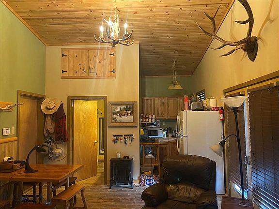 Make this home! On one of the nicest lots IN Craig on 2.5 acres. This is ideal wade fishing right out your back door. Currently there is a two-car garage with a one-bedroom, 1-full bath studio attached. New ceramic tile flooring that imitates hardwood. You'll never want to leave the enormous covered patio with river and canyon views. Included is a teepee with electricity and a gazebo. Lawn has sprinklers. 100-year flood plain. Buyers to verify what county will allow with respect to additional building.