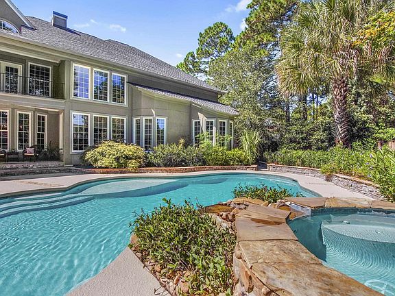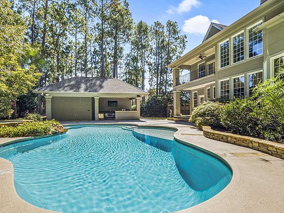 Resort Living in your own private home! Phenomenal custom home, pool, spa, cabana and grounds! One of a kind floorplan with outstanding architecture and features. This home is a jewel that has been carefully maintained by the present owners. The Pool, Spa and Cabana are surrounded by plush landscaping creating an outdoor oasis on an approximate acre lot with stone and wood fencing privatizing the entire backyard. The dramatic curved staircase, soaring ceilings, walls of large windows and multiple covered balconies set this home apart. The Private Master Suite on the main level is located in the rear of the home for added privacy and enjoyment of the backyard views. Master features a bay window seating area and a palatial bath with wow shower! There is a second suite on the main level perfect for guests or in-laws. Upstairs there are 3 additional bedrooms for a total of 5. Several of the rooms have private covered balconies including a special bonus space upstairs that overlooks the pool and backyard. A second bonus room upstairs is perfect for a media room or home gym. Centrally located kitchen with large center island is the perfect hub for family gatherings. Kitchen and breakfast room open to family room with great views of pool & backyard. Upscale GE Monogram stainless appliances include built-in refrigerator and separate ice maker.