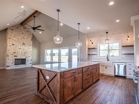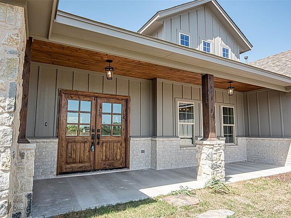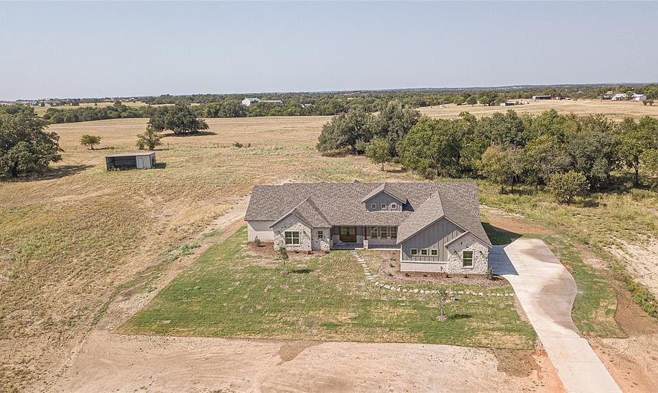 Brand new CT Home on 2+ acres. Located in Weatherford in the acclaimed Peaster ISD. Home has many upgrades, quartz counter tops, large eat in island kitchen, high end gas range, custom vent hood, glass cabinets, floating shelves and professional designer touches. Great one story floor plan with cathedral ceilings, 4 bedrooms, 3.5 baths and 3 car garage. Private outside living area custom wood ceilings beautiful huge oak trees backs up to large ranch with no homes in site. House sits on a hill with privacy and access to community pond. This house is a must see!! Agent related to seller.
