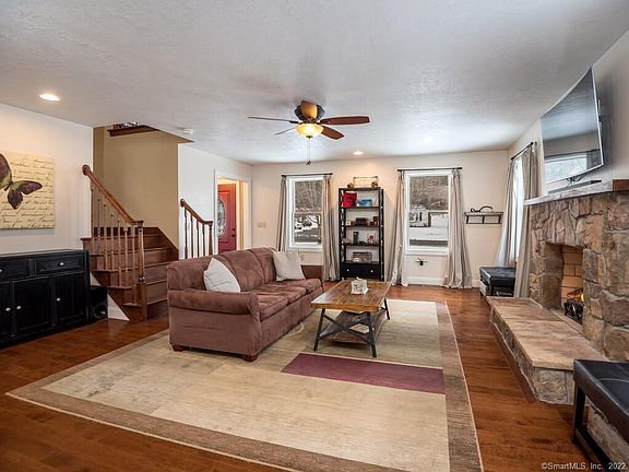 Custom built one owner home! First time on the market. Oversized Cape with "open concept" main level, 3/4" maple flooring troughout the first floor w/porcelain tile in the kitchen and all baths. Living room has a beautiful fireplace w/propane fire insert, enjoy cool nights by the fire! Dining & kitchen areas are open to the living area, kitchen contains large island w/quartz tops, upgraded cabinets, plenty of space to entertain all. Fr. Doors from the light & airy dining room offer access to the 24x16 composite deck and a wonderful view of the Quaboag River which abuts the property. Master bedroom with a full bath and walk-in closet, and maple flooringon main level as well.The second level contains 2 very large bedrooms with a full bath w/dbl sinks between. Laundry area, access to garage, back yard & bonus room directly next to kitchen. Above the 2 car attached garage is a bonus room, framed, heat and electric installed, ready to be finished as a playroom/schoolroom/office, whatever you decide! With stairway access from the mudroom area and a full bath just at the bottom of the stairs, could also be a au pair suite/teen suite.