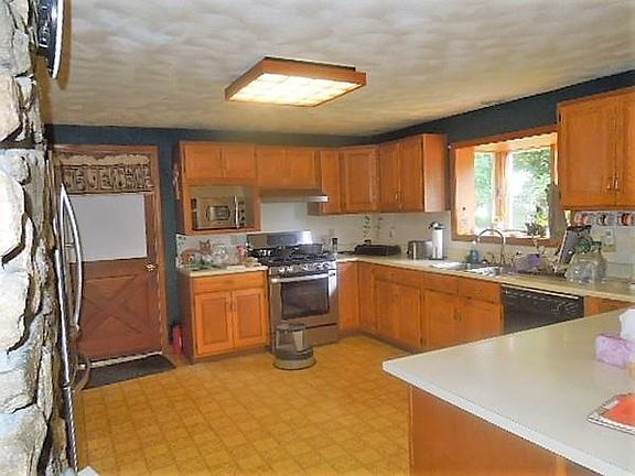 Sprawling extended ranch with two car attached garage on lovely dead end side street. Solar panels create an energy efficient home. Fenced yard with fabulous inground gunite pool on side and large open space in the back. Smaller fenced area ideal for pets or could be a great spot for a garden. The home offers a huge country kitchen open to dining area with stone hearth/fireplace and spacious living room with picture window. Three spacious bedrooms on the main level with a full bath accessed from the hallway or the Master Bedroom. The Master has its own deck overlooking the yard and pool.The lower level is fabulous finished space adding 1000 sq. ft. of living area including a kitchenette and additional full bath. Sliders from the basement lead to another deck and the pool area. Central Air, 2 sheds, irrigation system and water filtration system are a few of the extras.