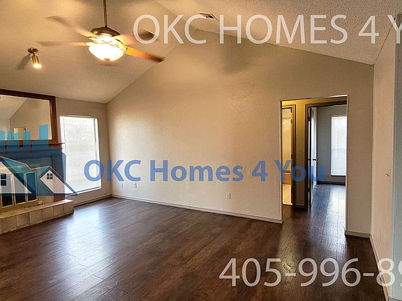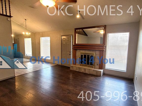 Introducing our stunning 3 Bedroom 2 bath home located in the desirable area of Edmond, OK. This charming residence boasts an array of amenities that are sure to impress. As you step inside, you'll be greeted by the elegant wood-look flooring that flows seamlessly throughout the living room and bedrooms, creating a warm and inviting atmosphere. The dining room and kitchen feature beautiful tile flooring, adding a touch of sophistication to the space. The large living room with its vaulted ceiling provides an open and airy feel, perfect for entertaining guests or simply relaxing with loved ones. On cooler evenings, cozy up by the fireplace and enjoy its comforting ambiance. The kitchen is equipped with modern appliances, including an electric range, built-in microwave, and dishwasher, making meal preparation a breeze. The convenience of an inside utility room ensures that laundry day is a hassle-free experience. Step outside onto the covered patio and envision yourself enjoying a morning cup of coffee or hosting a delightful outdoor gathering. With a two-car garage, you'll have ample space for parking and storage. Located in the sought-after area of Edmond, this home offers easy access to a variety of amenities, including shopping, dining, and entertainment options. Don't miss out on the opportunity to make this house your home. Schedule a showing today and experience the comfort and convenience this residence has to offer.