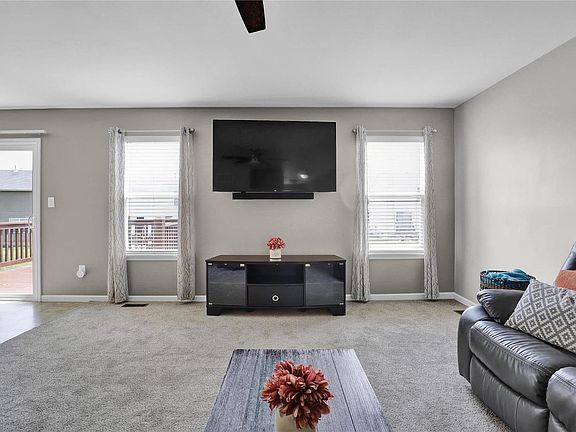 Welcome to your new spacious 3-bedroom, 2.5-bathroom, 2-story home located in Wentzville! As you enter the inviting entry foyer, with a convenient powder room continue on into the great room, where ample windows flood the space with natural light. New flooring in the great room which seamlessly connects to the breakfast room & kitchen. Kitchen features plenty of cabinets, pantry, new dishwasher, electric stove, & built-in microwave. The breakfast area steps out to the oversized deck. Upstairs, discover three comfortable bedrooms, including the luxurious primary suite. Primary suite boasts spacious walk-in closet & private primary bath complete with double sinks, a separate tub & shower. The second-floor laundry room makes laundry day a breeze. Lookout lower level is ready for your personal touch & includes a rough-in for a bathroom. Two car garage. Kitchen refrigerator, washer, dryer stay w/home.  Located right off the highway & offers easy access to nearby amenities & attractions.
