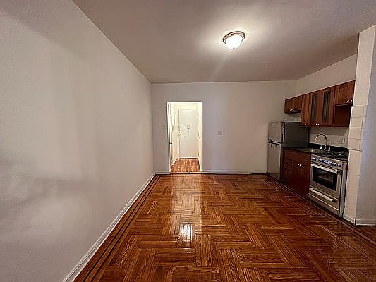 This two-room apartment is ready for rent. new kitchen cabinets and appliances in the unit. The kitchen and LR are combined, but there is a separate bedroom.