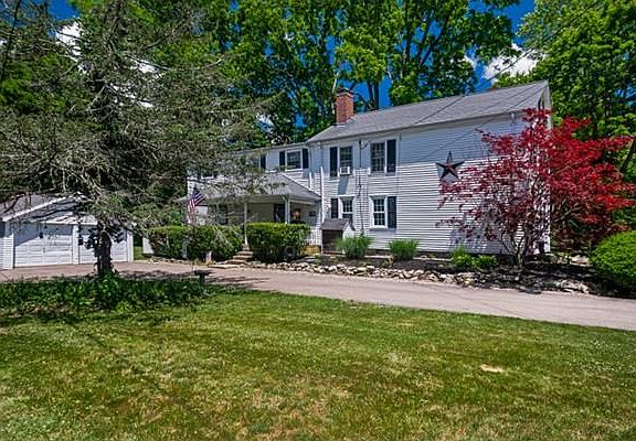 Got a RV or Boat?? Like to work on cars? This is the house for you. Roomy 4/5 Bedroom New England Colonial home with many modern upgrades including a huge family room addition boasting beamed ceiling, fan light, a stone fireplace with a wood stove just off the country kitchenn, new corian counters. Massive master bedroom, 2 full modern bathroom, 1 with a Jacuzzi tub. Convenient laundry on 2nd floor. Lots of wood flooring give this home such a cozy feeling. Walk up attic for storage. Most of the windows are less than 10 years old. Set on a very private lot. Other features include 2 car garage with electricity, a separate 2 plus car outbuilding for recreational vehicles with electricity, a shed and wood shed. Newer septic system installed about 2 years ago. A perfect home for the large family.