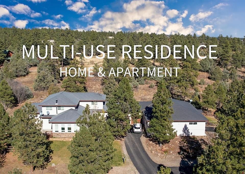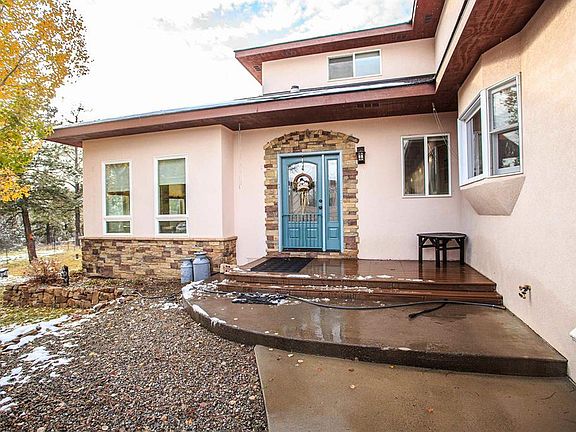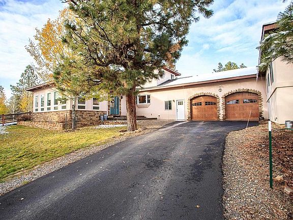 Quality built custom home on 5 wooded acres, just a few minutes from Pagosa Springs uptown amenities. Very private setting , good southern exposure to Pagosa's 300 plus days of sunshine every year. Paved driveway, producing well and beautiful landscaping greet you upon arrival. Plenty of extra's with this one.- Beautiful Solarium with in floor heat and water feature. Custom quality throughout the home, Hickory cabinets, Knotty Alder pine doors, Granite counters, Stainless steel Gourmet level kitchen. Primary home has Master on main level with an additional bedroom that makes a great office or bonus room. Upstairs you will find 2 more bedrooms and a bath, plus additional living area. The garage is a large finished and heated 2 car, with shelving and storage. Just off the garage is an additional 2 bedroom guest home, all on 1 level- A complete apartment with full kitchen and 1.5 baths and living room, plus an additional garage. Great location, great layout and fabulous custom quality. Home makes a great multi-generational dwelling, that is very hard to find in Pagosa. Pagosa Springs is a haven in Colorado Mtn living with relatively affordable lifestyle in a an amazing climate and surrounded by a myriad of natural resources. The PLPOA HOA offers owners a robust recreation center with plenty of health improvement options along with access to a myriad of small lakes for fishing and recreation. Rare find in Pagosa Meadows, call us or your broker for a visit soon.