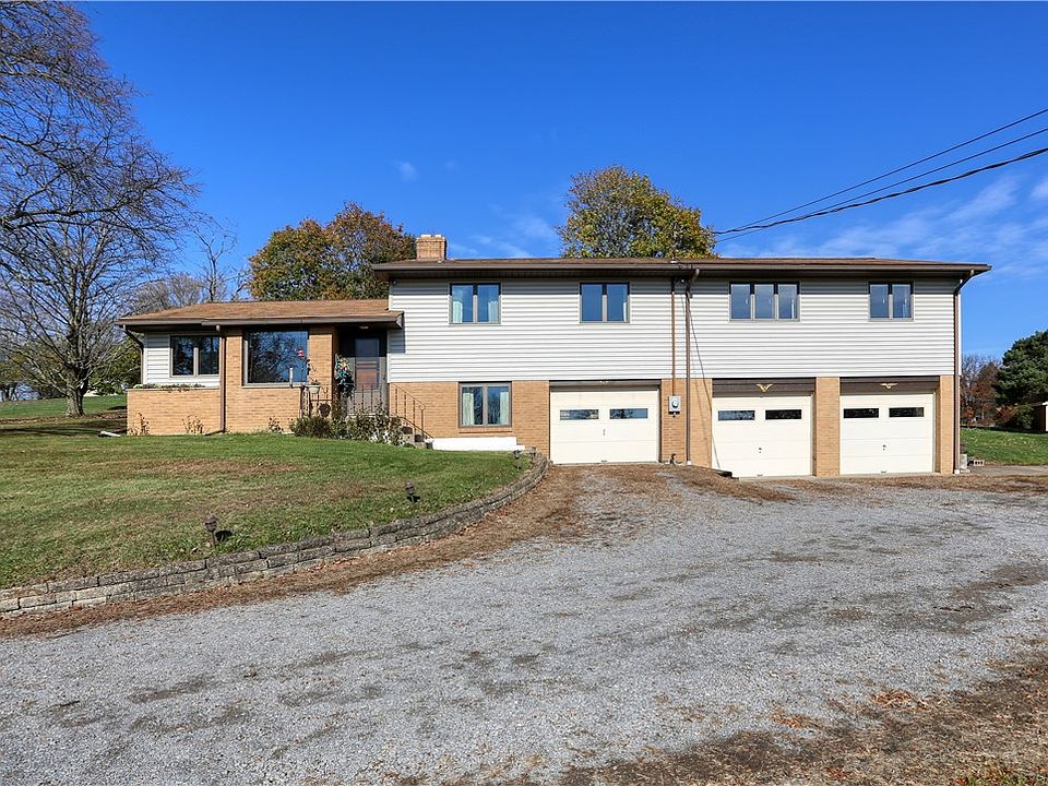 This four-bedroom multi-level house rests on .98 acres just minutes from historical Harmony and Zelienople. The addition was built in 1984 and features two of the four bedrooms, a large bonus room, and a heated two-car garage with a fruit cellar/cold storage. Hardwood floors are throughout the original home. The furnace boiler was updated in 2022 and includes the hot water heater. Other updates: a new circuit breaker box in 2021, new vinyl siding in 2020, new roof in 2015, and Anderson windows in the original part of the house in 2014.The maple cabinets in the eat-in kitchen were custom-built in 1999. Enjoy the swing on the covered back patio which is accessed through the living room and the expansive views of the countryside from the front of the house.