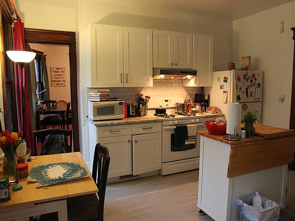 Great apartment in lovely and very convenient location, near East Rock Park, shops, restaurants, and on two Yale shuttle routes. This classic turn-of-the-20th-century apartment has beautifully maintained hardwood floors throughout, natural woodwork, and large windows which create a graceful, airy and bright space. There are five rooms: two good-sized bedrooms, newly renovated kitchen with large pantry, dining room and living room. Bathroom also newly renovated. Washer and drier in house. Lots of storage space, including in a locked garage. Tranquil, tree-enclosed back yard. Off street parking included for one car. Apartment is in owner-occupied two family house. Non smokers and no pets, please.