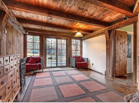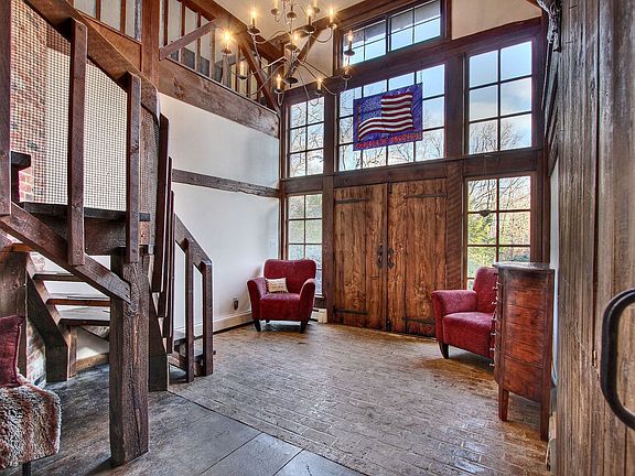 A RARE OPPORTUNITY-Presiding majestically in its serene & private setting on over 2 acres of towering trees & velvet lawns, this remarkable residence captivates with its immense architectural richness, charm & history. Circa 1860, Warnke Barn once sited on over 350 acres was converted to a residence in the '70s. An impressive circular drive, surrounded by lush lawn accented w/a delightful array of colorful plantings is the prelude to this 3700+ sq ft home & its charming entrance. The well-proportioned interior is graced w/an extraordinary light & airy ambiance resulting in its openness to the outdoors, made possible by abundant windows, skylights & glass doors that make the grounds an extension of interior space. This post & beam home with its carefully preserved exposed beams & brick, wide plank flooring, soaring ceilings, walls of glass & sliding barn door are just a few elements that create a high standard of aesthetics reflected throughout the welcoming residence. The open floor plan presents the living room w/fireplace, dining room, kitchen extending to a cozy family room w/fireplace & skylights, an office w/powder room, a large en-suite master bedroom on main level w/bath & fireplace, 2nd spacious master bedroom on 2nd flr w/bath, 2 walk in closets & balcony overlooking the pool & gorgeous grounds. 3 additional bedrooms are serviced with a bath on the main level. The residence brims with charm encompassing privacy, seclusion, beauty & convenience. Walk to town, school