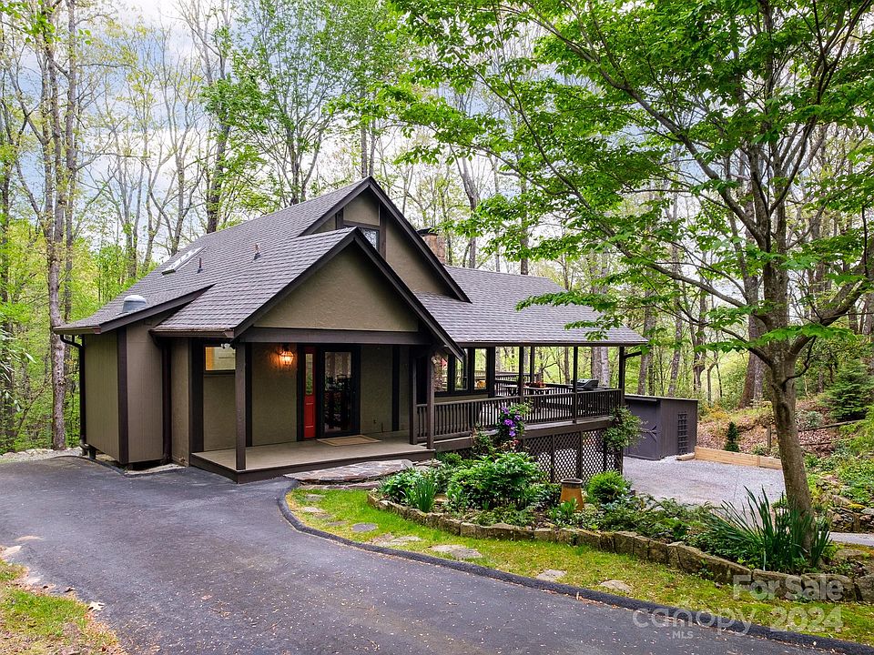 Welcome to 145 Catatoga Path, a quaint 2 bed, 3 bath cottage with a bonus room in the basement. This home is nestled on a double lot and surrounded by custom landscaping including extensive stonework and beautiful native plants. This home finds the perfect balance between the rustic mountain cottage exterior and clean contemporary lines inside. The main level features an updated kitchen, a living room with lots of light, and a spacious dining area that flows outside onto the covered and open decks with seasonal views. This home is designed to encourage life to flow freely between the interior and exterior spaces. This home also features a full suite downstairs including a kitchen, extensive living space, and a gas fireplace. The downstairs suite also features its own private egress to the parking area and backyard. This home sits on a double lot with plenty of gently sloping land that could be perfect for pets or setting up hammocks or additional outdoor living areas.