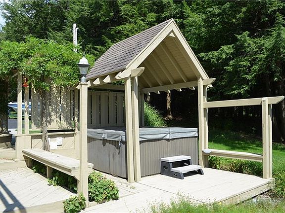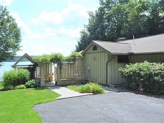 Phenomenal lake views, DBL. LAKEFRONT LOTS, 200' waterfrontage, charming lake home--this one has it all & much more! Step inside and you will agree undeniably one of the best lake views at Indian Lake! The open living areas of kitchen, dining & living room feature hardwood flooring, fireplace with propane logs, expansive glass taking advantage of the views, updated kitchen with hickory cabinets, ceramic flooring, pantry & propane/electric combo range. The deck off the master bedroom is perfect spot for your morning coffee; updated master bath. Main level includes 3 guest bedrooms and another full bath. A spacious family/game room on lower level with great lake views is a walkout to the deck; includes 5th bedroom and bath/laundry room. Great tiered decking with pergola & covered hot tub area-perfect areas for outdoor entertaining. Other amenities include 2nd lot, detachable dock at waterside decking, detached oversized garage for boat & toy storage, propane hot water heat, privacy!