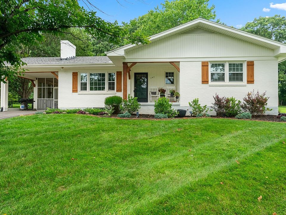 This completely renovated brick charmer in the Brookville School District is a must-see! Move-in ready, this home is distinguished by stunning indoor and outdoor spaces. The fenced-in backyard features a darling chicken coop and a 2-bay garage/workshop, perfect for the car enthusiast! Step inside to a welcoming living room with a white-washed wood-burning fireplace. The kitchen shines with quartz countertops, soft-close cabinets, and stainless steel appliances, plus a dining area with custom-built bench seating. Down the hall, you'll find 2 guest bedrooms and an updated hallway bathroom. The spacious primary bedroom includes its own renovated bathroom with tile surround. The lower level offers a bonus family room and an office that can double as a bedroom, with an unfinished area for extra storage. Enjoy relaxing on the screened-in porch, playing in the backyard, or cozying up by one of the two fireplaces.