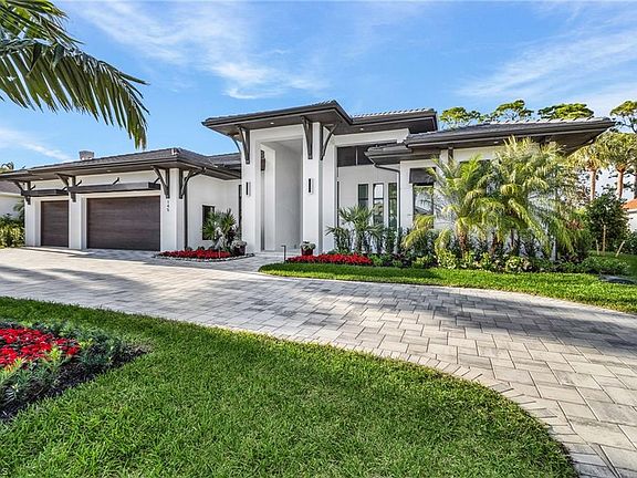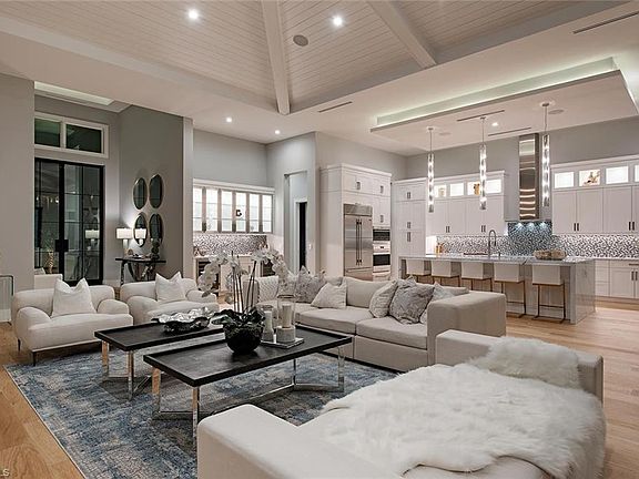 A long-awaited New Construction Smart home, in Audubon Country Club, elegantly design by South Florida Design, Inc. & built by FORGE CONSTRUCTION, LLC. Completed in December 2023, this highly efficient 4 bedroom + Den, 5 full bath, 1 half bath, Saltwater Pool/Spa custom home overlooking the 15th fairway, offering 4,346 sf under air with a total of 6,417 sf of seamless indoor/outdoor living space. An elegant yet casual design includes an open floor plan perfect for entertaining with wet bar, wine frig. The kitchen includes Sub-Zero Refrigerator, Wolf appliances, waterfall quartz counters and oversized walk-in pantry. The private Owners Suite incl. dbl vanities, multiple head walk-in shower, spa tub & his/hers closets. This split bedroom floor plan offers three add'l family size bedrooms all w/private bath. The lanai features a summer kitchen, casual dining & living w/gas fireplace and state-of-the-art Pentair pool system w/custom lighting, Pool bath, outdoor shower and picture window screens. Audubon Country Club is located in North Naples minutes to Vanderbilt Beach and The Mercato, with only a short drive to everything downtown Naples has to offer. Furnished photos from model home
