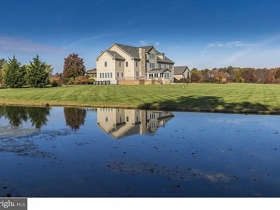 A GEM IN CHESTERFIELD! This beautiful 10,000 square foot country estate features 46 acres, most of which is farm preserved, offers a half-acre pond with a breathtaking sight from the rear of the house. Panoramic views can be enjoyed from the moment you walk through the double front door entrance. The gracious two-story foyer with dramatic double staircase will impress you upon entrance. The home is filled with many original details including an elevator, high ceilings, gorgeous woodwork and exceptional moldings. The striking chef's kitchen features a large working island, stainless steel appliances, multiple sinks, and an oversized pantry, with an abundance of natural sunlight channeling through the four seasons room. Family and guests can enjoy intimate gatherings or extravagant entertaining in the large family room complete with stone fireplace. Formal living room and dining room complete the first floor of this fabulous home. Retreat to the second floor where you will find the sumptuous Master Suite with custom walk-in closets and luxurious Master Bath. An executive office customized with built-ins is off the Master Suite. Five more bedrooms complete the second floor. Upstairs overlooks both the lush backyard and the sweeping front lawn with circular driveway. The third floor offers additional space which includes bedrooms, a bathroom and storage. The basement provides an additional 3000 square feet illuminated with natural light, and includes a wine cellar, large game room space, and opens to a walkout patio. The outside also offers a separate, paved basketball court. Five zones of HVAC keep every room at the perfect temperature year-round. A complete whole house generator is installed for that extra added comfort. This is a rare opportunity that offers quality of life all year round, while being minutes to major access routes to both Philadelphia and New York City.