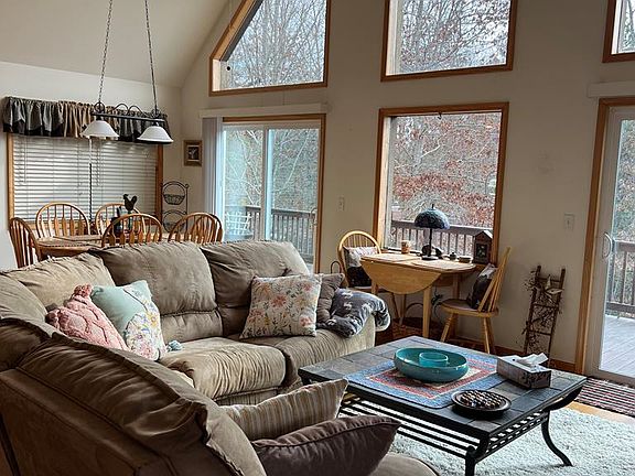 Discover the epitome of mountain living with this charming chalet-style home nestled on 1.01 acres of serene landscape. Boasting two cozy bedrooms and two full bathrooms, this retreat offers a perfect blend of rustic charm and modern comfort. Embrace the beauty of nature from every angle, whether you're cozied up by the stone fireplace or soaking in panoramic views from the deck. Complete with modern amenities and stylish furnishings, including a fully equipped kitchen and comfortable living spaces, this home comes ready for immediate enjoyment. Secluded enough to offer privacy, this property is an ideal full-time residence, vacation home, or investment opportunity. Don't miss out on the chance to own your slice of mountain paradise.