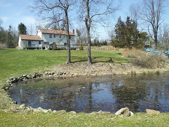 Beautiful Land. Hardwood floors through out. Very Large Kitchen with all new stainless steel appliances and beautiful new quartz countertops. Kitchen opens to the family room and has easy access from garage. Formal front Entrance Center Hall Colonial. Family Room has full length windows and doors that open to back yard. Pride of owner ship is obvious with this Center Hall colonial. Hardwood floors are on entire first floor. This home boast a family room with brick and stone fireplace and picture window over looking the level back yard and swimming pond. The main floor has a large Formal living and large Dining room that is perfect for those holiday dinners where there is room for all to sit around. There is a mud room with laundry area and an extraordinary amount of cabinet space and closets between the kitchen and garage. Many windows are full length letting in the natural light. The second floor has a master suite plus 3 generous sized bedrooms with plenty of storage space and closets. The hard new engineered flooring is clean, crisp making this home move in ready. Gorgeous property provides privacy and scenic views. Expansive decking perfect for entertaining! This property is set off the road & has a fresh water spring fed pond that is large enough to go fishing or swimming. Must see. Only 55 minutes to NYC and only 10 minutes to ORMC. Goshen Schools! The bus stops at the end of the driveway! Brand new roof with a warranty!!