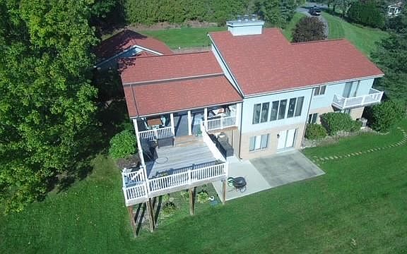 Welcome to 145 Club Manor. Spectacular views can be found from the abundance of windows facing east & the Laurel Mountains. This four bedroom three full bath home has approximately 4500 sq feet under roof on both living levels. vaulted wood ceilings in the living room with log burning fireplace & sliding glass doors leading to the multi level deck. The expansive Oak eat in kitchen with island is adjacent to the dining room with windows & sliding glass doors leading again to the multi level deck. The owners suite has a private deck with great views, a large walk in closet & private bath with double vanities, large soaking tub and separate shower. The lower level is great for entertaining. It has a wet bar & family room with a log/gas bricked fireplace. Sliding doors lead to a lower level patio. Two additional bedrooms with generous closets with a full bath are on this level. Huge storage area 26x50. Laundry located on main level. Extra large 3 car attached garage. Large grassy areas.-