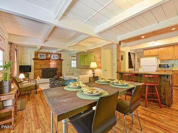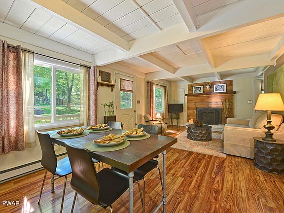 Move right in to this Cozy Chalet featuring 3 BR and 1.5 BA. Open Concept Kitchen, Dining Area & Living Room offering Fireplace with Wood Stove Insert, One Bedroom on First Floor, Laminate Wood Floors, & Updated Baths, Front & Back Decks. Newer windows on lower level and a spacious flagstone patio with pond less water feature and fire pit to enjoy nature. Located approx. 2 blocks from lake to enjoy fishing and kayaking. Community also offers outdoor pool, tennis courts, & playgrounds. Minutes to Dingmans Bridge. Perfect home to start your dream of home ownership.
