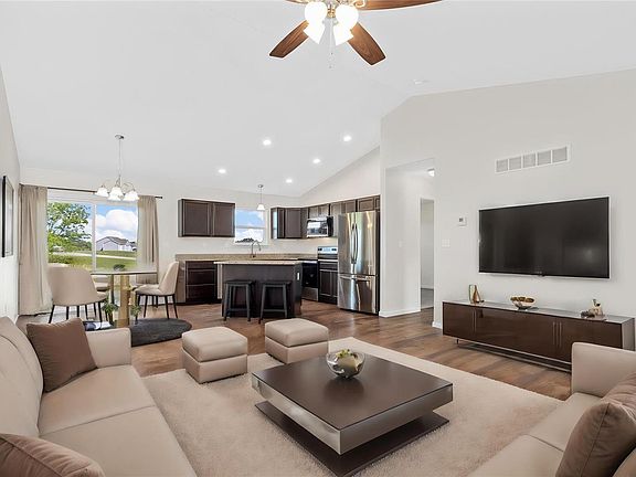 Welcome to your almost-new dream home! This 9-month-new beauty is ready for you to move right in. An open floor plan featuring upgraded vinyl plank flooring, can lights, window treatments & vaulted ceilings. The kitchen boasts stainless appliances (fridge stays!), granite counters, & plenty of cabinet space.