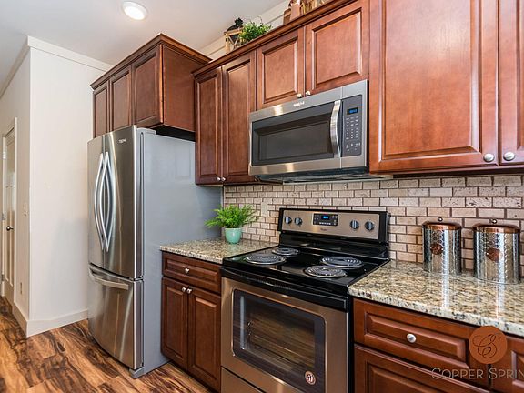 Welcome to The Springfield at Copper Springs, our three bedrooms, two and half bath, two story town home offers a beautifully designed space of 1908 square feet. You will have a utility room upstairs for your washer and dryer( Hookups), all your name brand kitchen appliances which are stainless steel, granite counter tops, stunning flooring, digital keypad on front doors, rear patio for extra outside living space, attached garage, and an amazing master bath with his and her vanity. Our residents will also have access to the fitness center, private community pool in mid May, and have the option to lease one of our storage spaces on site. High speed internet and basic cable are included in rent, dogs are welcome with a monthly pet fee (breed restrictions do apply. Tenant responsible for electric and water