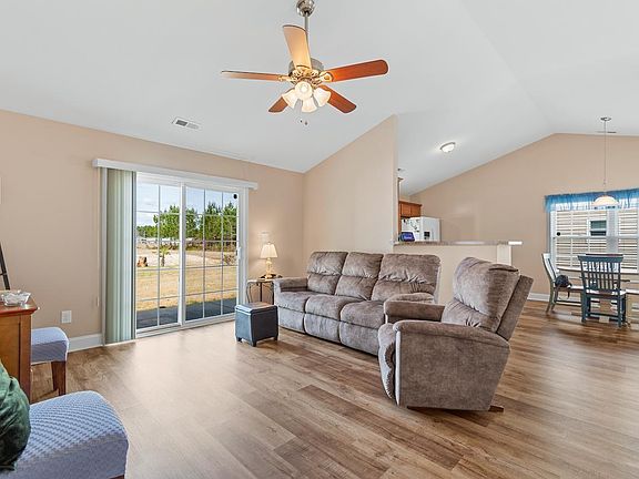 Great news!! Just pack your bags and boxes! MOVE IN READY!! In a private backyard setting with a portable building for storage or workshop and patio, this new, energy-efficient home offers a sense of awe. Located less than 30 miles from the beach and just minutes away from shops and dining spots in Conway, SC, this property is nestled in an established neighborhood that boasts convenient access to various amenities. The light-filled living areas within and a relaxing private place to relax on the rear patio add to the charm of this home. The kitchen is equipped with kitchen appliances, with a cozy dining area and breakfast bar. The large master bedroom suite features a tray ceiling, ceiling fan, walk-in closet, a walk-in shower and a privacy window that allows natural light. Other features include 30-year roof shingles, a finished garage with an automatic door opener, sidewalks, and street lights throughout Cottage Creek perfect for walking and biking. Enjoy beautiful wooded or lake views. The property is in close proximity to the historic downtown Conway, shopping, dining options, and a short drive away from the beach. Additionally, it is conveniently located just 11 miles from Coastal Carolina University and Horry Georgetown Tech.