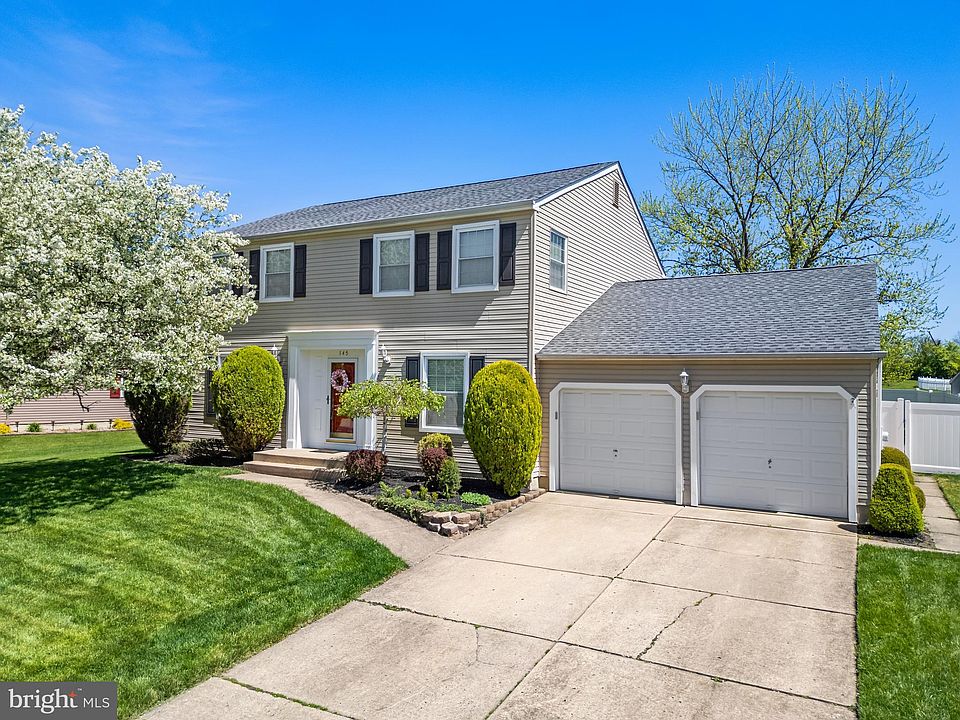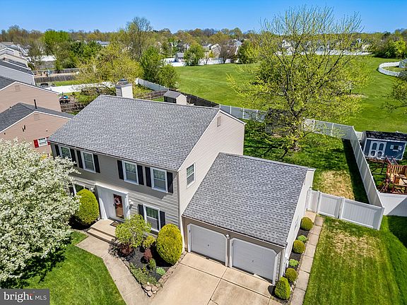 Multiple offers received. SHOWING AND OFFER DEADLINE is TUESDAY 4/23 at 5PM. Located in Marlton’s desirable Country Farms development, this lovely Arlington model embodies the quintessential suburban home with four bedrooms, two and half baths, a 2-car garage, and a spacious fenced-in yard with a premium setting that backs up to one of the community’s open park spaces. From the moment you pull into the driveway, the home’s charming curb appeal creates a welcoming environment that beckons you to enter. Inside, the spacious 2566 sq ft layout of this colonial-style home offers the perfect balance of comfort, style and functionality. From the foyer, richly toned hardwood flooring leads you into the main floor’s classic center-hall floorplan. Flanking the foyer entryway on opposing sides sit the sunny living room and dining room. Elegant millwork and classic wall panel molding create a sophisticated ambiance befitting each room’s formal intent. Behind the dining room sits the eat-in kitchen where dark granite counter-tops and crisp white cabinets stand out against the neutral, earth-tone walls and flooring while the eating area enjoys a view of the backyard from the double windows. Adjoining the kitchen is the cheery family room. A more casual setting for relaxation and family gathering, the family room’s relaxed atmosphere offers an inviting space to lounge and socialize while remaining within the nearby buzz of kitchen activity. The rustic, brick fireplace wall takes center stage as the standout architectural feature in this spacious, yet cozy setting. From the family room, a sliding glass door offers access onto the concrete patio that overlooks the neatly manicured yard. With no backyard neighbors, you have more quiet and privacy to enjoy your outdoor living space. Rounding out the main floor is the powder room and convenient laundry room with access to the two- car garage. Upstairs, you will find the large, master bedroom with walk-in closets and an en suite master bath. Three additional, well-proportioned bedrooms and a hall bath complete the second floor. No basement = no problem. You will have no shortage of storage options thanks to the 2-car garage, bakyard shed, two attic spaces and the concrete-floored crawlspace. Pride of ownership is evident in the way these owners have steadfastly maintained the home with updates and upgrades that include: new hot water heater (2023), new dryer (2023), new HVAC (2021), patio (2019), fence (2019), shed (2018), and roof (2017). Plus, the Sellers are offering a one-year HSA home warranty for Buyers’ peace of mind. Adding to the appeal of the home itself is this property’s desirable location. Few communities offer the abundance of amenities for all ages that can readily be found in Country Farms. Embrace the outdoors at one of the neighborhood’s various sports fields, meander along the walking and biking trails, play a game of tennis, shoot hoops on the basketball courts, cast a line in the picturesque lake, or unwind with a picnic in one of the community’s lush, open fields. With so much to offer, don’t delay in calling today to make your appointment to view this impressive gem. This could be the one you’ve been waiting for!