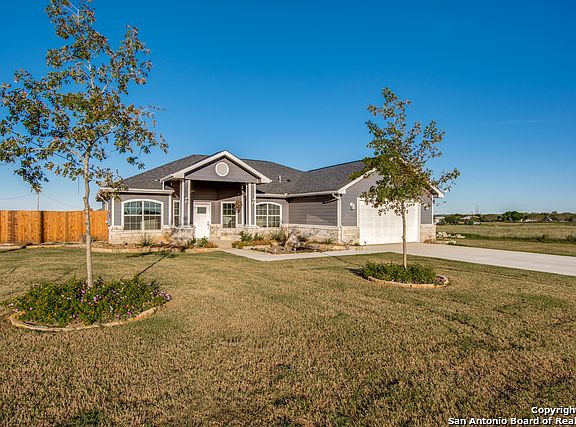 Beautiful one story home in Pearsall, TX. This home features an open floor plan with both high vaulted and tray ceilings, recessed lighting and arch accents throughout. Beautiful granite counters and upgraded fixtures in kitchen and Bathrooms. This home is pristine and turnkey ready to move in!