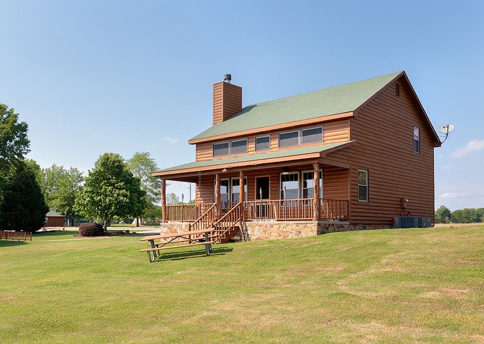 THE COVE AT DOUBLEHEAD....Gated community where living is easy. This 2 story log siding home features ceramic flooring throughout. Wood burning fireplace for cozy winter nights. Exposed beams in the living room with tall ceilings. Stove and refrigerator are new. Entire interior has been painted. There is a large detached garage roomy enough for a pontoon. Detached garage (built in 2015) has water, electricity and insulated. Enjoy the water with your own private pier and a wave runner dock. HOA dues include lawn maintenance, beach, tennis courts, softball field, yearly termite inspections, common ground areas including swimming pool. (HOA is $275 per month). Nothing to do but move in. House is being sold fully furnished! You will love lake living at Doublehead.