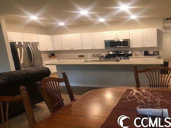 Gorgeous 3BR/2BA/2 car garage home 2 years young and looks brand new. Walk into the front door and be greeted by lovely luxury vinyl plank floors throughout foyer, hall, kitchen, family room and dining area. The bedrooms are all carpet, but rest of home has vinyl flooring. As you enter there is a large coat closet to your left and 2 spacious guest bedrooms, each with double door closets. Between bedroom is a full bath featuring a tub/shower and linen closet located conveniently to also serve guests/family. Venture further and find a huge, open, airy space with updated kitchen with stainless steel appliances to include a side-by-side French door refrigerator/ freezer, dishwasher, microwave, and gas range. Kitchen is adorned by lovely white cabinets, subway tile backsplash, and gorgeous granite counter tops and breakfast island boasting a deep large sink. Kitchen is fully open to dining area and has large pantry room. There are sliders to a patio and large back yard with lovely community fence proving great privacy on back. Family room is spacious and open to kitchen and dining area. Yes, then there’s the large master bedroom with master bath loaded with double sinks, 5’ walk-in shower, separate spacious linen closet, and a huge walk-in closet. Home has a large laundry room complete with washer, dryer, and shelves to hang and store laundry. Two car garage, tankless water heater, great yard, and community. Community offers community pool, community garden and playground area- all for a low POA. If that’s not enough venture to North Myrtle Beach (approximately 15 minutes) and enjoy the ocean, restaurants, shopping and many golf courses. See it- you’ll want to call it yours.