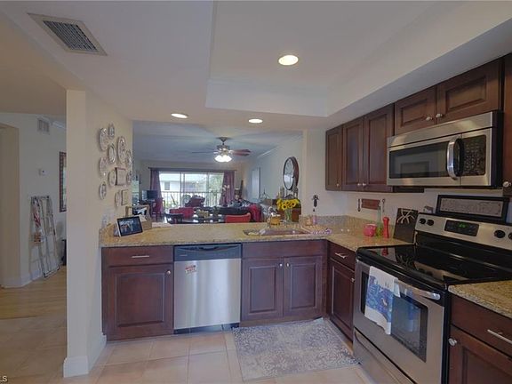 See this beauty while you can! Rarely available second floor 2 bed 2 bath condo. The kitchen is beautifully upgraded with granite counter top, tile flooring and stainless steel appliances! The great room is spacious and offers an abundance of natural light, perfect for entertaining. The master bedroom is sizable and features a walk in closet, separate vanity and bathroom areas as well as lovely sliders to the lanai providing additional light. The guest bedroom is also generous with an adorable bathroom. Fantastic view of the lake and community pool all from the comfort of your screened in lanai! Building 145 is nestled away at the rear of the Spanish Pines community with a fabulous view! Covered parking and extra storage are just steps away! Spanish Pines is a well maintained community and is located just West of I-75 on Immokalee Rd. You don't have to go far to enjoy shopping centers, fine dining, local hospital, entertainment and our world class beaches!