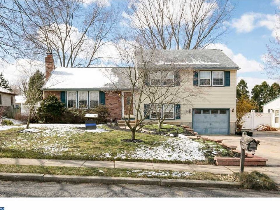 Presenting a charming Split Level that is located in desirable "Tenby Chase." Walking through the updated wood paneled front door, you are greeted with hardwood flooring and neutral paint throughout. To the left is the Living Room with cozy, wood-burning fireplace and exposed wood beams that run through into the Dining Room. Note, the wall between the Kitchen and Dining Room has been removed for a modern open flow. The Dining Room features a wood trimmed sliding door to access the deck while the Kitchen provides beautiful wood cabinetry, tiled backsplash, ceramic tile flooring and upgraded appliances. The lower Family Room brings in lots of natural sunlight with access to the Laundry Room and half bath. Upstairs, there are 3 spacious bedrooms all and updated full bath. Well cared for home. Additional features include: newer roof, deck, hot water heater that have all been replaced within the last year. Close to all major highways such as Rt. 130, 295 as well as close proximity to Philadelphia. Make your appt. today!