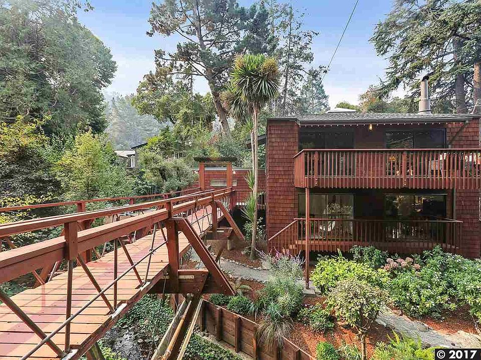 Welcome home to this stunning split-level Chalet. Built in 1972 by renowned architect John Hans Ostwald, this contemporary home is a striking blend of Swiss architecture and Bay Area atmosphere. The feeling of being enveloped in nature is almost immediate when approaching this property, as you meander down a wooden bridge in lush surroundings to the front door. Gorgeous interior spaces feature vaulted ceilings, wood-burning fireplace, and an overall feeling of tranquility. Large windows throughout the home offer varying views. The custom kitchen features stone counters, stainless steel appliances and ample cabinetry. The resort-like master suite is both luxurious and comfortable, offering serene garden views, and elegant bathroom. This rarely found, nearly quarter-acre property was originally two parcels, providing myriad options for expansion. Truly an extraordinary opportunity in the heart of Montclair, located near shopping, dining, & top rated schools.