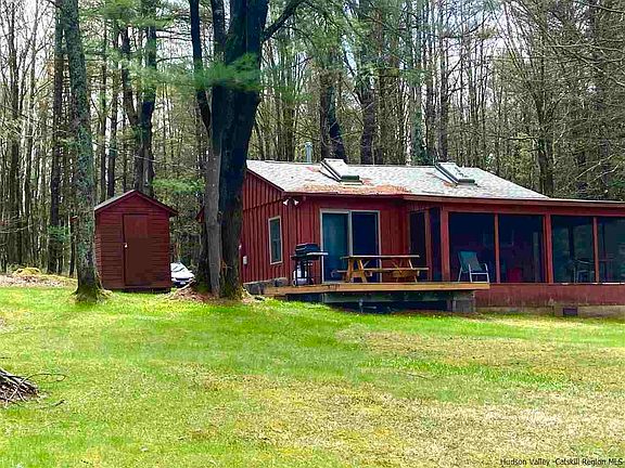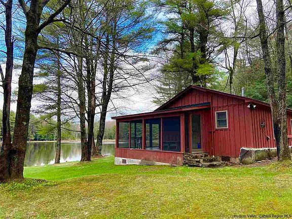 Nestled among 45+ private acres, at the edge of a large pond, this cozy cabin is a wonderful retreat from the hustle & bustle. This is a place of calm, beauty and sweet seclusion. THE HOME - Wonderful things do come in small packages! This ADORABLE CABIN has been WELL MAINTAINED, and while small, it is simply CHARMING and big on character. The cabin has an efficient layout with two bedrooms, a combined living/dining area, a bathroom and a storage/laundry room. The WRAP AROUND SCREENED PORCH is a perfect place to while-away the hours - reading, napping, watching wildlife or taking in the beautiful NATURAL SETTING. A new roof and drilled well were added in 2017. Heated with a propane stove and FIBER OPTIC INTERNET make this comfortable retreat. A small detached sauna, a one car garage/workshop and a stone barbecue complete the picture! THE LAND - The centerpiece of the property is the approximately 5 ACRE POND - more like a small lake than a pond! The pond is a magnet for WILDLIFE, home to several varieties of FISH and with an ever changing PLAY OF LIGHT - the setting is close to magical and the pond is an aquatic wonderland ideal for kayaking, fishing or perhaps swimming. There is a beautiful balance of evergreen & disciduous forest, a STREAM, and approximately 7 acres of OPEN FIELD - beauty assured through every season. The long SERPENTINE DRIVEWAY and about 1264 feet of road frontage ensures an enduring PRIVACY. The sellers has a successful history of vacation rentals. Located about 3.5 hours from NYC and about 1.30 hours from Albany this property will certainly appeal to individuals seeking a unique retreat, offering solitude, beauty in a naturally stunning location. A turnkey opportunity for the right price. Ideal for writers, painters, photographers, nature lovers and hunters alike.