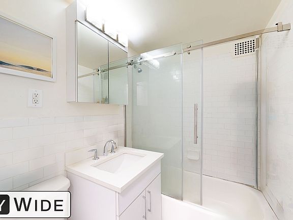 Great closet space and beautiful en-suite. The en-suite has a tub, glass doors, vanity for great storage and medicine cabinet. Completely renovated.