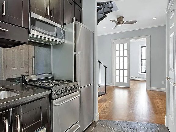Newly Renovated building in Gramercy! This beautiful 1 bedroom with spiral staircase to a private roof deck and balcony features a marble bathroom and a granite kitchen with stainless steel appliances including dishwasher and wine cooler. High ceilings, crown molding, pinpoint recessed lighting, exposed brick, and hardwood flooring. Laundry in unit. Available for June 1 occupancy. Building features Carson virtual doorman & package room. Conveniently located near public transportation, Madison Square Park, and NYU School of Medicine. The apartment is located between the M15 and M103 SelectBus Service, and a short walk to the 4,5,6 subway line