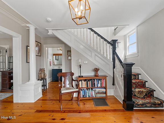 Classic cottage located in the Historic District in Edenton, NC. was completely renovated in 2020 by DownEast Preservation. This lovely home will welcome you the minute you step inside as it retains so much of its original character with original wood floors, columns and woodwork. An open foyer takes you into a spacious living room filled with natural light and original mantle. The kitchen hosts a breakfast room table and antique sideboard re-purposed as an island, creating a consistent feel of the historic origin of the home. Upstairs offers a small office with a balcony overlooking the neighborhood, master bedroom and bath, guest room, second bath. Double porches on the front, one on the side and a screen porch off the side are a fabulous way to enjoy the fresh air on any given morning or night. A new shed was placed by the current owners and can be used for storage or a workshop. Paint touch-ups are in process......Come see this home today!